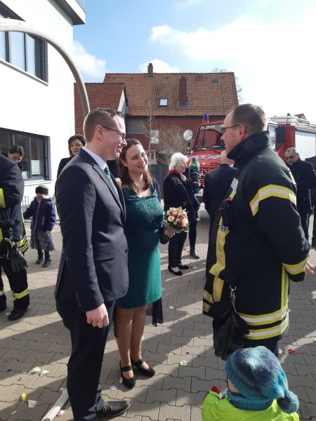 Am 28.02.2020 ehelichte unser Kamerad Florian Vogel seine Johanna. Traditionell durfte dabei vor dem Standesamt die Feuerwehrt nicht fehlen. Nachdem die Schläuche durchschritten waren, musste das frisch gemählte Brautpaar einen Baumstamm durchsägen. Anschließend wurde das Brautpaar von den Fahrzeugen der Ortsfeuerwehr begleitet. Die Ortsfeuerwehr Sibbesse wünscht dem jungen Brautpaar alles Gute für die Zukunft!