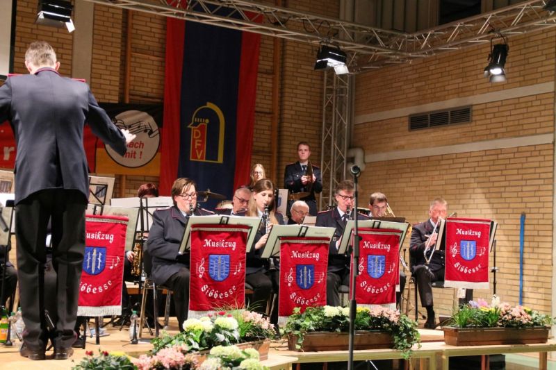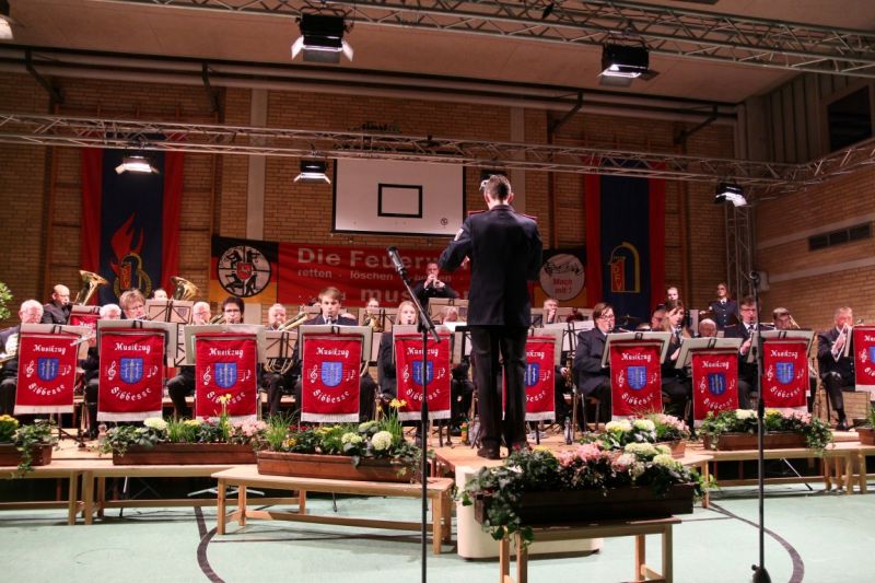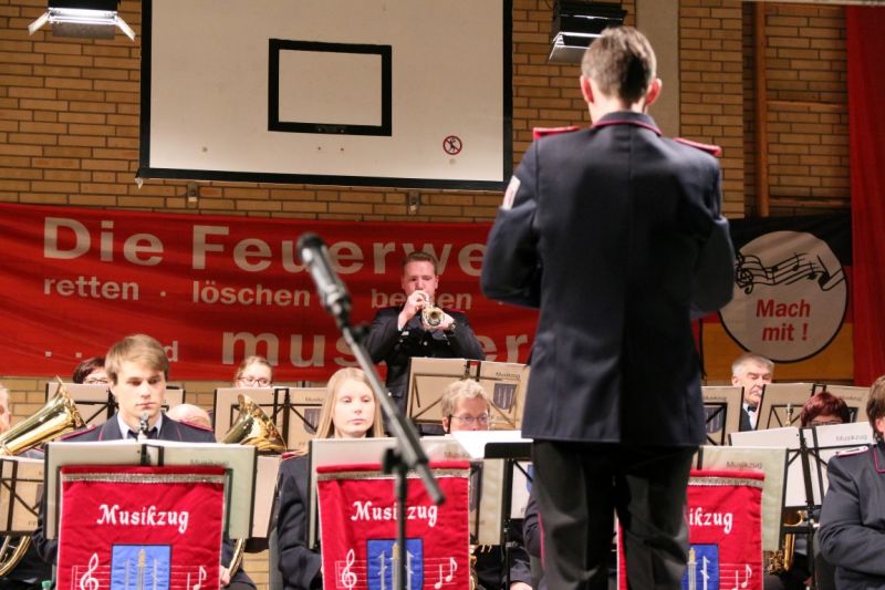 Bis auf den letzten Platz war die Turnhalle belegt, als der Musikzug und das Chörli am vergangenen Samstag Ihr Jahreskonzert gaben. Durch das abwechslungsreiche Programm führten Ulrike Domschowski, Jens Henke und Marcus Müller sowie Hausmeister Jakub und seine Geliebte Frau Posbischil (Wolfgang und Dorle Lorek). Höhepunkt des ersten Teils war das Stück „The Rose“ – brillant vorgetragen von Sven Bootsmann auf der Piccolo-Trompete. Das Chörli glänzte mit der Welturaufführung der Radost-Polka zur Melodie der Polka Ho-Ruck Bumm. Der Text über Glücksmomente und Freundschaft wurde eigens für das Chörli verfasst.