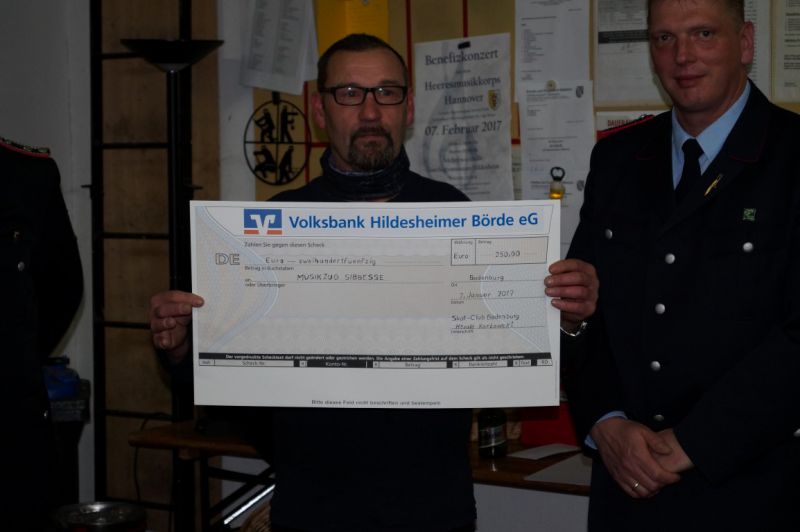 Eine positive Überraschung gab es dann noch in Form einer Spende. Der Skat-Club Bodenburg überreichte dem Musikzug eine Spende in Höhe von 250 Euro. Vielen Dank dafür!